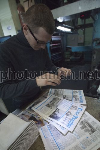 В типографии готовят спецвыпуск газеты "Голос Украины" в Киеве, в субботу, 22 февраля 2014 г. В спецвыпуске "Голоса Украины" напечатаны постановления Верховной Рады про увольнения и назначения представителей власти. Фото Анастасии Сироткиной / УНИАН