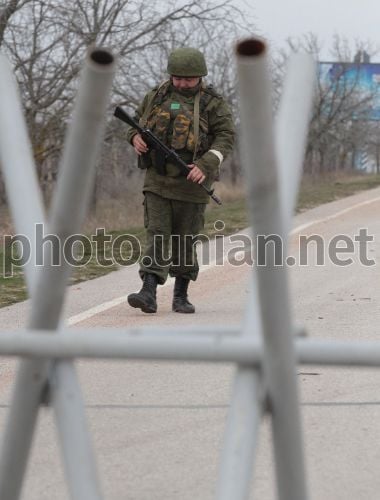 Российские военнослужащие перекрыли подъезд к аэропорту "Бельбек" возле Севастополя (АР Крым), в субботу, 1 марта 2014 г. Совет Федерации России единогласно принял предложение президента России Владимира Путина о введении войск в Украину. Фото Алексея Сувирова / УНИАН