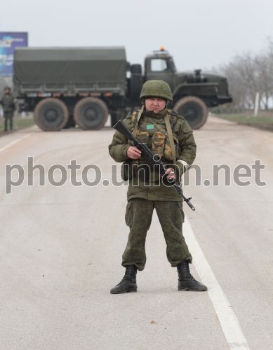 Российские военнослужащие перекрыли подъезд к аэропорту "Бельбек" возле Севастополя (АР Крым), в субботу, 1 марта 2014 г. Совет Федерации России единогласно принял предложение президента России Владимира Путина о введении войск в Украину. Фото Алексея Сувирова / УНИАН