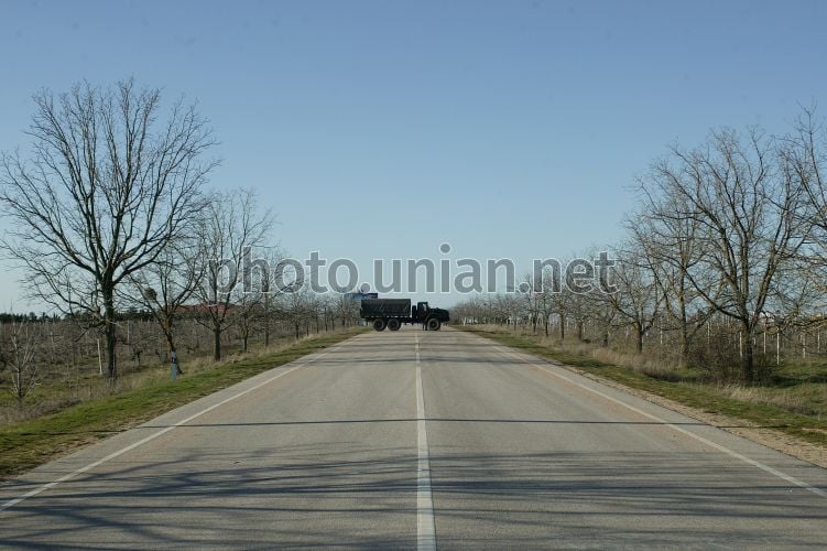 Российские военнослужащие перекрыли блоками и автомобилями подъезд к аэропорту "Бельбек" возле Севастополя (АР Крым), в понедельник, 3 марта 2014 г. Совет Федерации России единогласно принял предложение президента России Владимира Путина о введении войск в Украину. Фото Макса Рокотанского / УНИАН