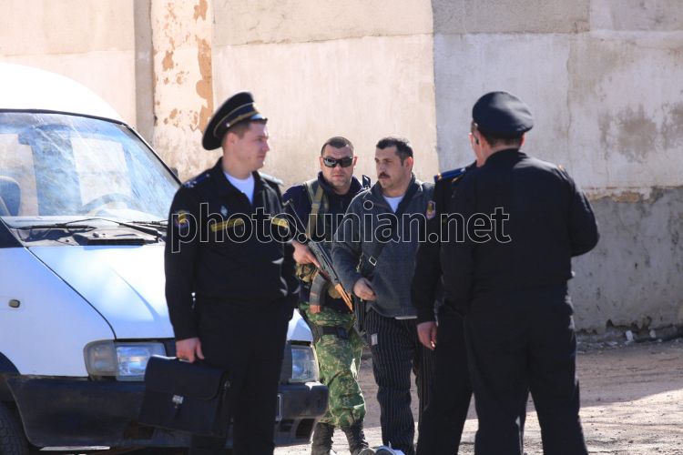 На территории в/ч А1100 (морская авиабригада ВМС Украины) в поселке Новофедоровка Сакского района Крыма, в субботу, 22 марта 2014 г. Командиру воинской части А1100 в Новофедоровке выдвинули ультиматум: если часть не будет сдана до 13:00, будет штурм. Фото Алексея Сувирова / УНИАН