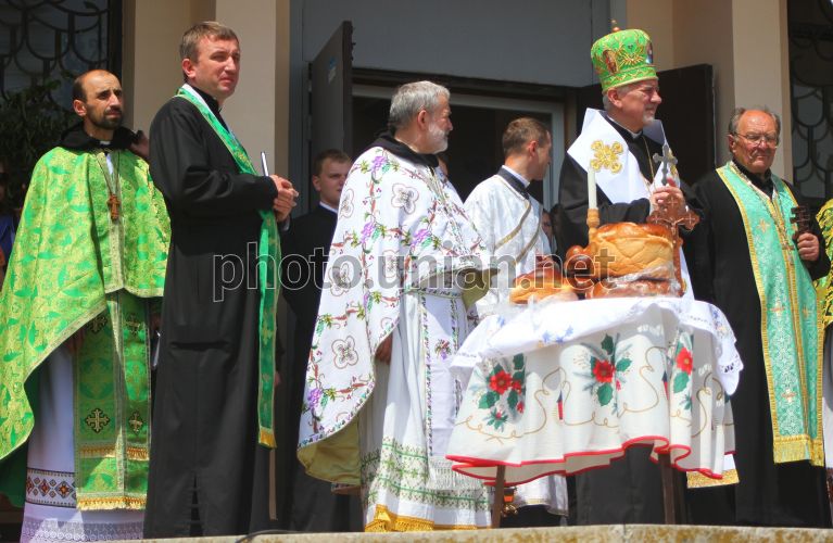 Священнослужители во время панихиды возле мемориального комплекса "Демьянов лаз" в Ивано-Франковске, в воскресенье, 8 июня 2014 г. В этот день в Ивано-Франковске в Мемориальном комплексе "Демьянов Лаз" состоялась панихида и вече-реквием по невинно убиенным. Фото Тараса Кошубы / УНИАН
