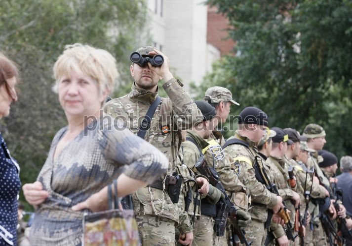 Украинские военнослужащие в освобожденном от террористов Славянске (Донецкая обл.), во вторник, 8 июля 2014 г. 5 июля украинские силовики освободили от террористов Славянск, который был захвачен в середине апреля. Фото Владимира Гонтара / УНИАН