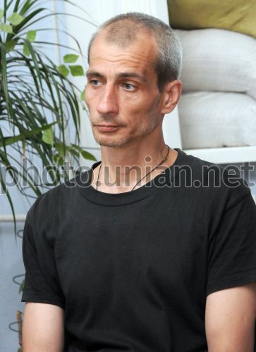 Нарушитель украинско-российской границы, житель города Москвы, гражданин РФ Дмитрий Прохоров в помещении отдела пограничной службы Харьковского пограничного отряда в с. Веселое (Харьковская обл.), в четверг, 31 июля 2014 г. В этот день приблизительно в 13.00 по киевскому времени недалеко от с. Пыльное был задержан гражданин РФ Дмитрий Прохоров, который незаконно пересек украинско-российскую границу и имел при себе предметы специального назначения: нож, тактический фонарь, файер и ракетницу. Кроме того у задержанного были обнаружены компас, нож-топор, автоматная разгрузка и маскировочная форма. Так же при нем был обнаружен билет на поезд №9 "Москва-Донецк" в один конец. Задержанный мотивировал свое пребывание на украинской территории поездкой к родственникам в Винницу, а в Донецк он ехал, чтоб увидеть, что происходит и разобраться в происходящем. Задержанный был передан сотрудникам Службы безопасности Украины. Фото Владимира Андреева / УНИАН