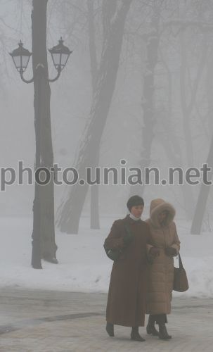 COMM Женщины гуляют в одном из парков Киева во вторник, 13 февраля 2007 г. По данным Гидрометцентра, завтра по всей территории Украине ожидается мокрый снег с дождем. Температура ночью от 2° тепла до 3° мороза, днем 0-5° тепла, в южных областях и Крыму ночью 2-7° тепла, днем 5-10°. Фото Александра Синицы / УНИАН