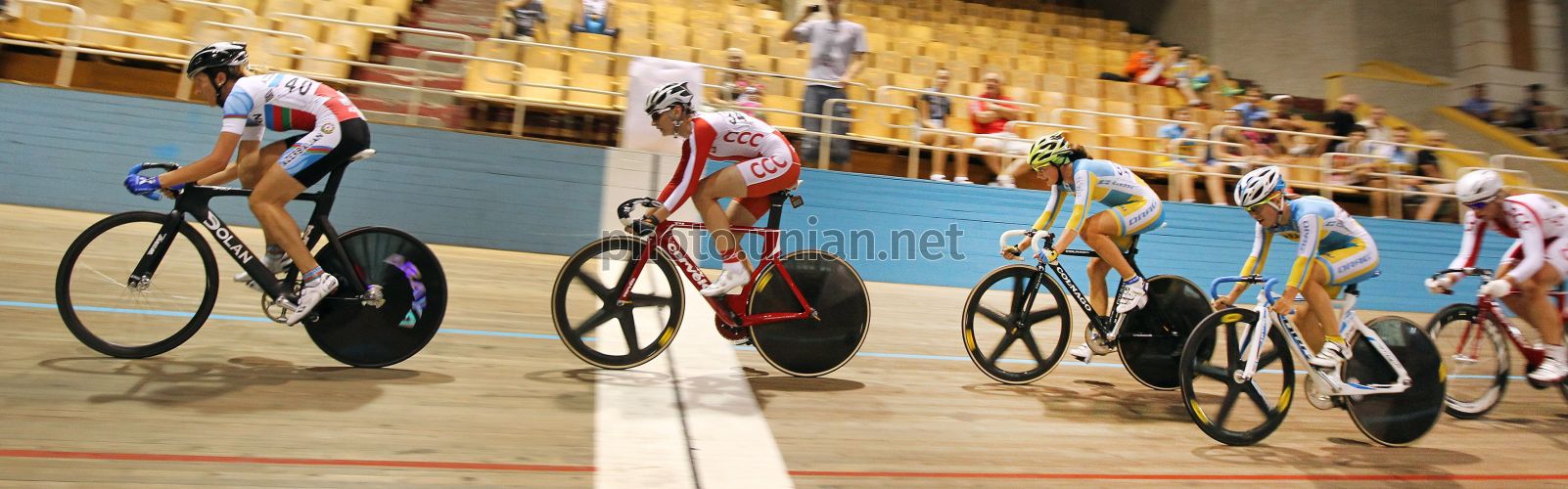 Международные соревнования по велоспорту "Кубок Галичины" во Львове, в пятницу, 8 августа 2014 г. На единственном в Украине крытом велотреке с деревянным покрытием учебно-спортивной базы летних видов спорта МО Украины во Львове 8 августа стартовали международные соревнования по велоспорту "Кубок Галичины". За награды будут бороться велогонщики-трековики из Украины, Польши, Азербайджана и Беларуси. Среди участников чемпионы и призеры Европы и мира. Соревнования пройдут в двадцати дисциплинах. Фото УНИАН