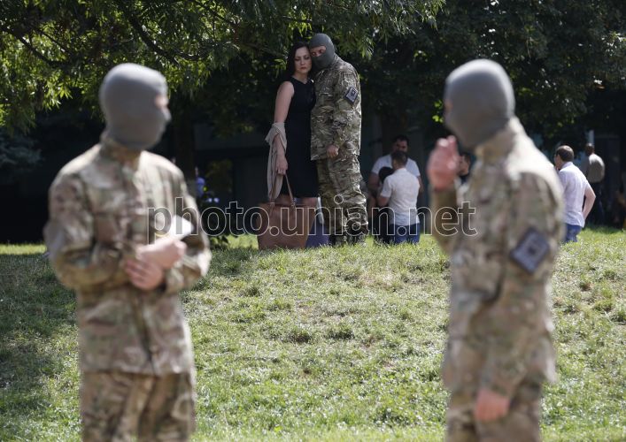 Бойцы батальона "Азов" во время проводов в зону АТО в Киеве, в воскресенье, 17 августа 2014 г. Фото Владислава Мусиенко / УНИАН