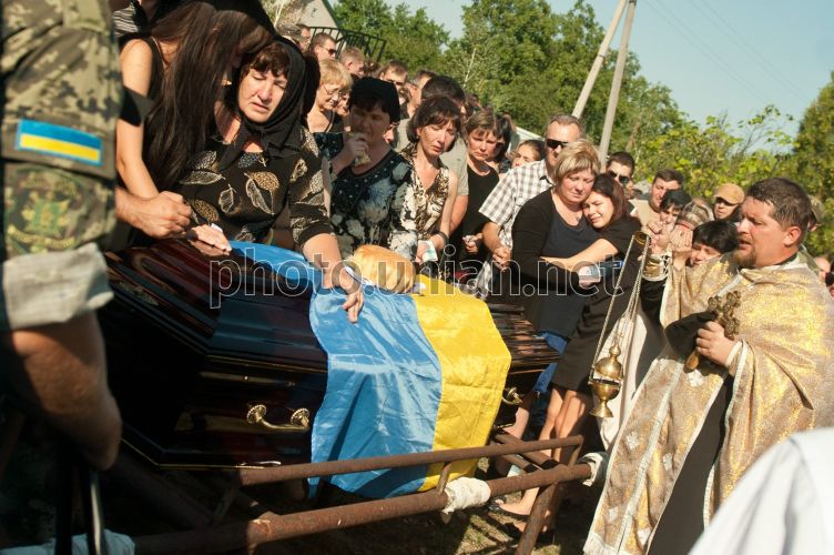 Церемония прощания с военнослужащим Юрием Дячковым, который погиб в зоне проведения АТО, в с. Нижняя Хортица (Запорожская обл.), во вторник, 2 сентября 2014 г. В этот день в с. Нижняя Хортица прошла церемония прощания с Юрием Дячковым, который погиб в зоне проведения АТО. Фото Александра Прилепы / УНИАН
