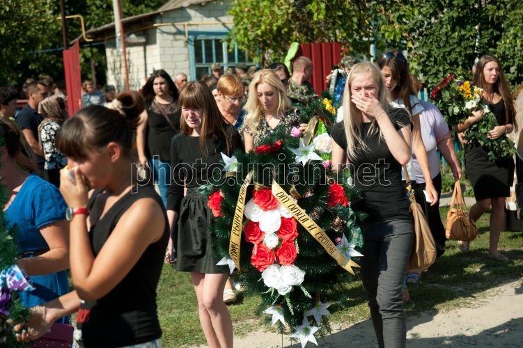 Церемония прощания с военнослужащим Юрием Дячковым, который погиб в зоне проведения АТО, в с. Нижняя Хортица (Запорожская обл.), во вторник, 2 сентября 2014 г. В этот день в с. Нижняя Хортица прошла церемония прощания с Юрием Дячковым, который погиб в зоне проведения АТО. Фото Александра Прилепы / УНИАН