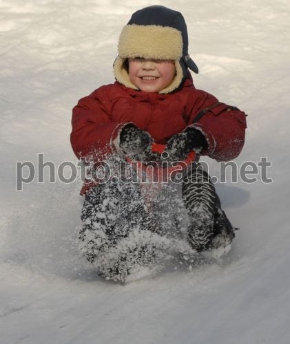 COMM Мальчик катается на санках во время празднования Масленицы в Пирогово (Киевская обл.) в воскресенье, 18 февраля 2007 г. Масленица - это древний славянский праздник, пришедший из языческой культуры. Главное блюдо масленичной недели - блины, главными атрибутами праздника являются веселые песни, катания на санях, хороводы. В последний день Масленицы сжигают чучело зимы и окончательно прощаются с ней.Фото Олега Гордиенко / УНИАН