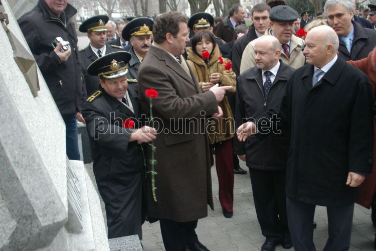 COMM Мэр Москвы Юрий Лужков, справа, и мэр Севастополя Сергей Куницын, второй слева, во время возложения цветов к вечному огню в Севастополе в среду, 21 февраля 2007 г. В ходе визита в Украину Лужков намерен подписать протокол относительно участия г. Москвы в развитии туристическо-рекреационного комплекса Крыма. Фото Василия Батанова / УНИАН