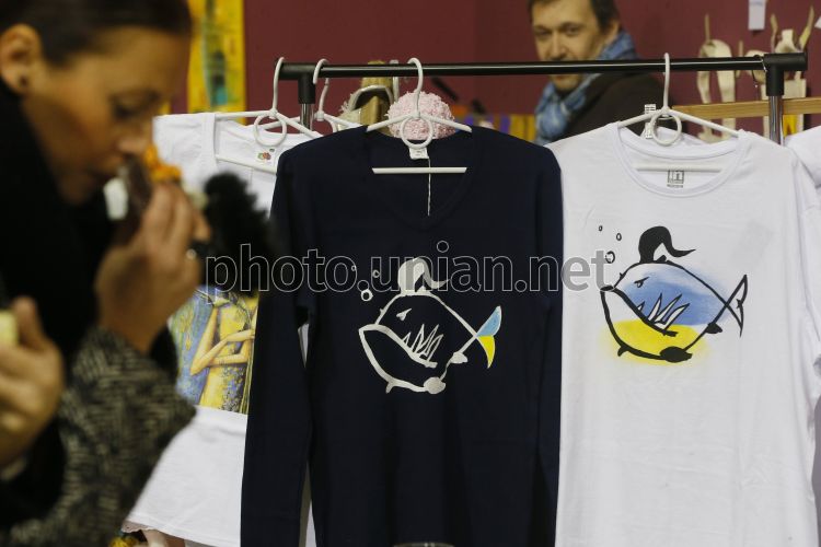 Патриотические товары ручной работы на II благотворительном фестивале "Укроп" на территории Национального культурно-художественного и музейного комплекса "Мистецький Арсенал" в Киеве, в субботу, 1 ноября 2014 г. Фото Владимира Гонтара / УНИАН