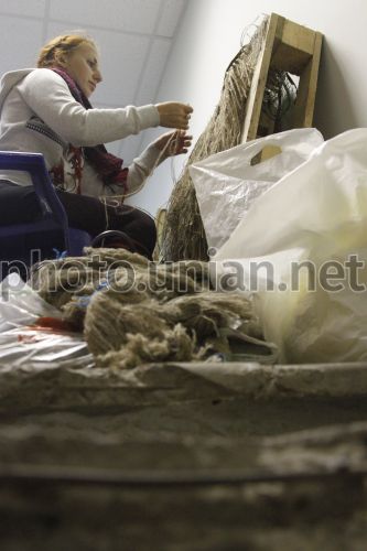 Волонтеры плетут маскировочные костюмы для снайперов "Кикимора" в Киеве, в понедельник, 17 ноября 2014 г. Фото Виктора Ковальчука / УНИАН