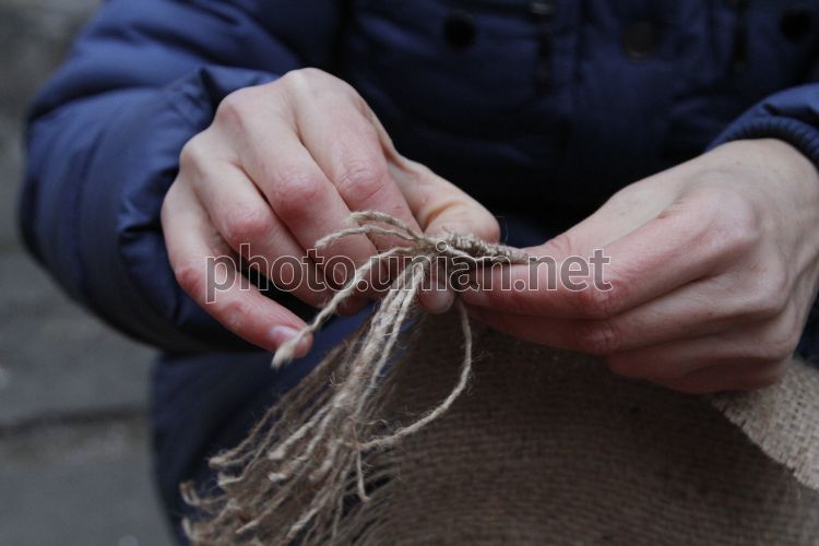 Волонтеры плетут маскировочные костюмы для снайперов "Кикимора" в Киеве, в понедельник, 17 ноября 2014 г. Фото Виктора Ковальчука / УНИАН