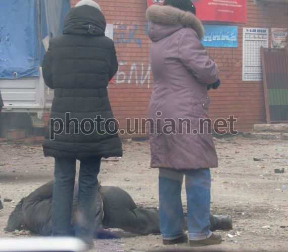 Последствия обстрела боевиками из так называемой "ДНР" территории жилого микрорайона "Восточный" в Мариуполе, в субботу, 24 января 2015 г. В этот день, утром территория жилого микрорайона "Восточный" в Мариуполе была обстреляна боевиками из так называемой "ДНР" со стороны населенных пунктов Саханка и Заиченко. Обстрел террористами Мариуполя, в результате которого, по предварительным данным, погибли 15 человек, велся минимум из трех "Градов". Фото Николая Рябченко / УНИАН