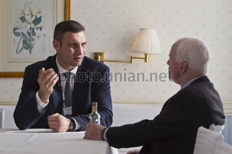 Мэр Киева Виталий Кличко, слева, и сенатор США от Республиканской партии Джон Маккейн во время встречи в Мюнхене (Германия), в субботу, 7 февраля 2015 г. Киевский городской председатель Виталий Кличко прибыл в Германию для участия в работе 51-й Мюнхенской конференции по вопросам безопасности. Фото Андрея Скакодуба / POOL / УНИАН