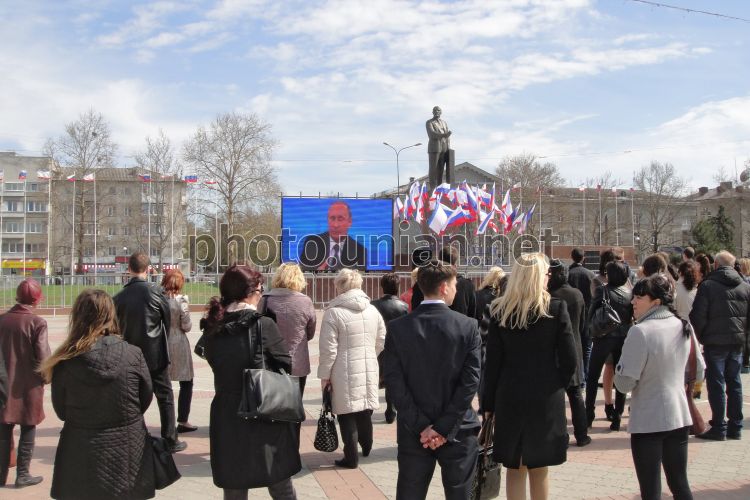 Жители Симферополя приняли участие в прямой линии с президентом РФ Владимиром Путиным, в четверг, 16 апреля 2015 г. Фото УНИАН