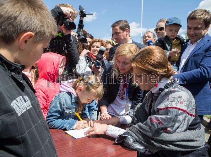 Супруга президента Украины Марина Порошенко во время посещения "Города профессий" в Киеве, 16 мая 2015 г. Всеукраинский национальный социальный проект "Город профессий", целью которого является профориентационная работа с детьми всех слоев и возрастных категорий, реализуется при поддержке супруги Президента Украины Марины Порошенко. Фото Маркив Михаил / POOL / УНИАН
