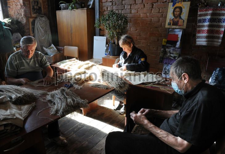Волонтеры плетут маскировочные сетки и сетки-кикиморы для снайперов в одном из волонтерских центров в Харькове, 2 июня 2015 г. Фото Владимир Андреев / УНИАН