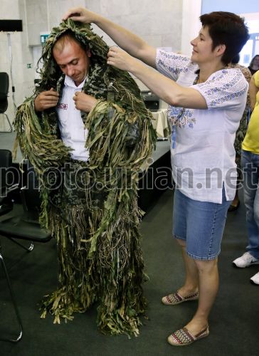 Активисты ОО "Волонтерское движение Батальон Сетка" презентуют маскировочный костюм "Ghillie" в Киеве, 3 июня 2015 г. В этот день в Киеве состоялась презентация маскировочного костюма "Ghillie". Фото Синица Александр / УНИАН