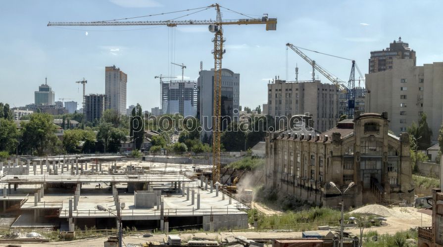 Реконструкция здания трамвайного депо и строительство ТРЦ на Лукьяновке в Киеве, 4 августа 2015 г. В Киеве в торгово-развлекательный центр встроят памятник архитектуры начала ХХ века. Здание трамвайного депо и электростанции присоединят к строящемуся комплексу близ метро Лукьяновская. Планируется, что в помещениях разместятся магазины одежды и галерея искусств с зонами для отдыха. Фото Фалин Владимир / УНИАН