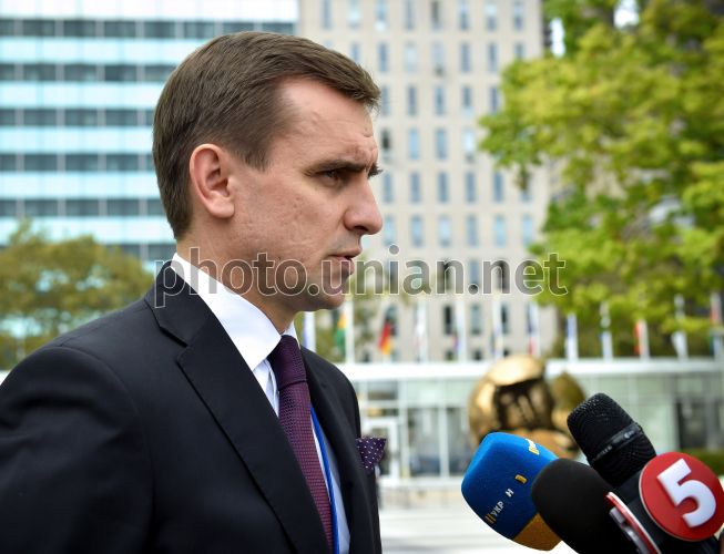 Заместитель главы Администрации президента Украины Константин Елисеев отвечает на вопросы журналистов в Нью-Йорке (США), 29 сентября 2015 г. Фото Лазаренко Николай / POOL / УНИАН