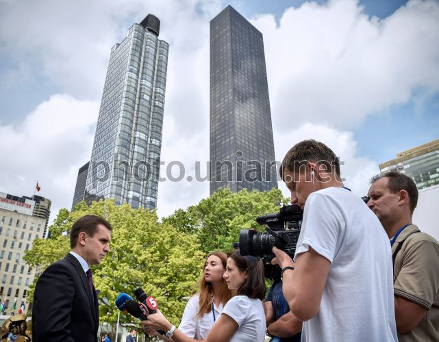 Заместитель главы Администрации президента Украины Константин Елисеев отвечает на вопросы журналистов в Нью-Йорке (США), 29 сентября 2015 г. Фото Лазаренко Николай / POOL / УНИАН
