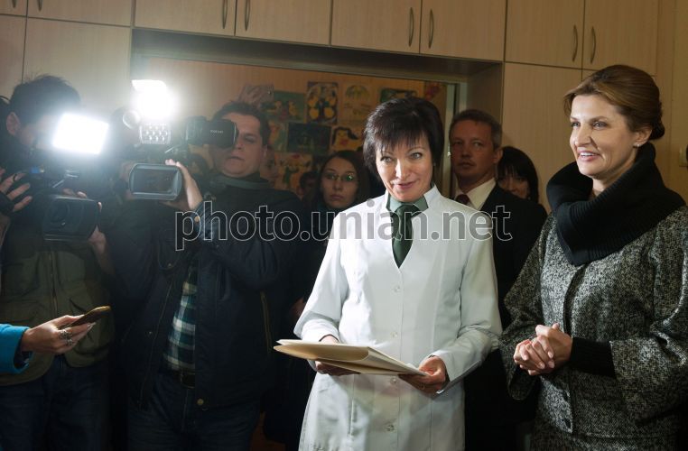 Супруга президента Украины Марина Порошенко во время посещения военного госпиталя в Запорожье, 13 октября 2015 г. Фото Прилепа Александр / УНИАН