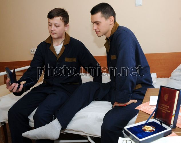 Бойцы, раненные в зоне проведения АТО, рассматривают государственные награды в Военно-медицинском клиническом центре, в Харькове, 28 октября 2015 г. Фото Владимир Андреев / УНИАН