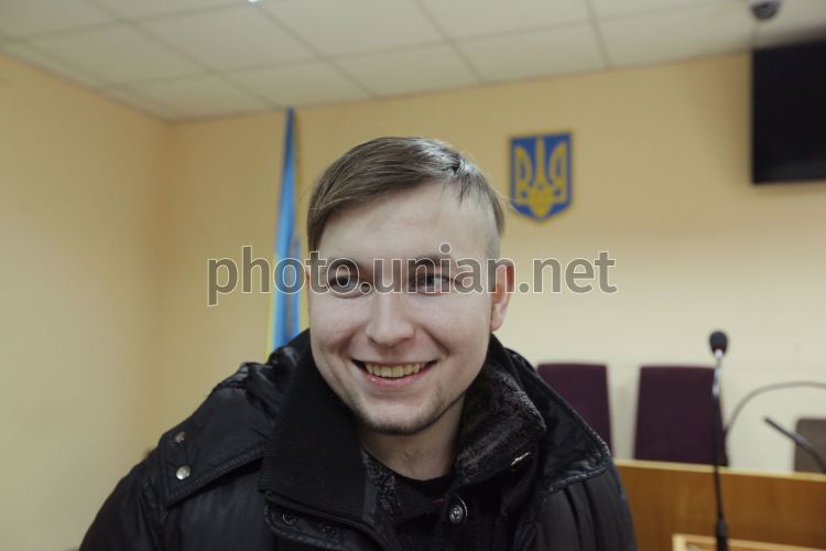 Подозреваемый в убийстве троих инспекторов ГАИ Григорий Гульвиченко в зале заседаний Подольского райсуда Киева, 26 января 2016 г. Суд по делу об убийстве сотрудников ГАИ в Киеве перенесли на другую дату. Двое подозреваемых Олесь Черняк и Григорий Гульвиченко сейчас находятся под домашним арестом. Ночью 2 марта 2014 г. в Киеве застрелили троих инспекторов ГАИ на КПП на Броварском проспекте. Фото Нужненко Сергей / УНИАН