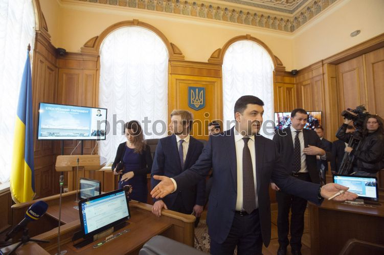 Председатель ВРУ Владимир Гройсман презентовал проект электронного парламента "Е-парламент - от бумаги к электронному управлению", в Киеве, 3 февраля 2016 г. Фото Сироткина Анастасия / POOL / УНИАН