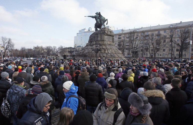 Митинг в поддержку задержанного патрульного полицейского Сергея Олейника на Софийской площади в Киеве, 21 февраля 2016 г. Печерский районный суд арестовал на два месяца полицейского Сергея Олейника, который подозревается в умышленном убийстве подростка, который находился в БМВ, который преследовали правоохранители 7 февраля. Фото Синица Александр / УНИАН