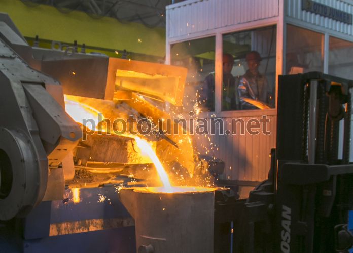 Литейный завод "Металит" в Кировограде, 7 апреля 2016 г. Холдинг "Эльворти Груп" (Кировоград) ввел в эксплуатацию литейный завод "Металит" в Кировограде, инвестировав в предприятие около 120 млн грн. Завод "Металит" находится на территории завода "Красная звезда", входящего в структуру "Эльворти Груп", и построен на базе бывшего литейного цеха предприятия. Фото Шрамко Олег / УНИАН