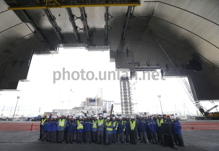 Работники Чернобыльской атомной электростанции (ЧАЭС) в Припяти (Киевская обл. ), 26 апреля 2016 г. Президент Украины Петр Порошенко по случаю 30-й годовщины аварии на ЧАЭС посетил зону отчуждения. Фото Мусиенко Владислав / УНИАН
