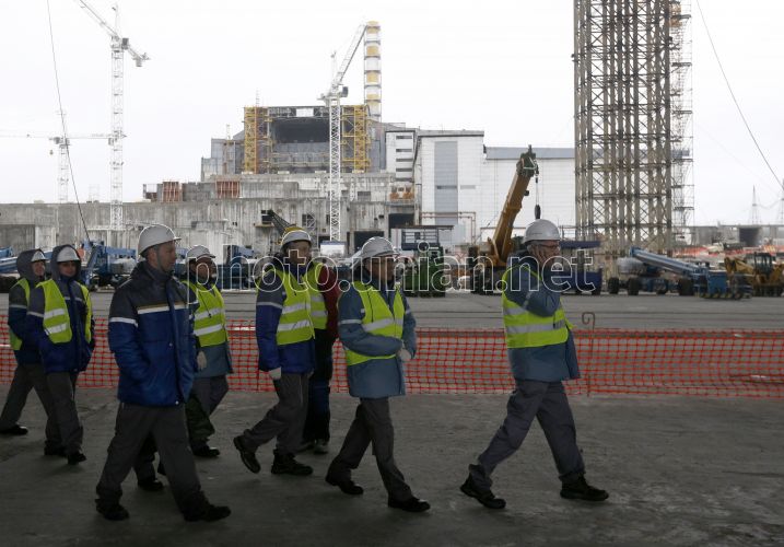 Работники Чернобыльской атомной электростанции (ЧАЭС) в Припяти (Киевская обл. ), 26 апреля 2016 г. Президент Украины Петр Порошенко по случаю 30-й годовщины аварии на ЧАЭС посетил зону отчуждения. Фото Мусиенко Владислав / УНИАН