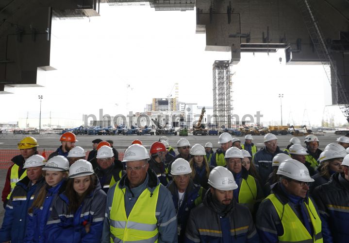Работники Чернобыльской атомной электростанции (ЧАЭС) в Припяти (Киевская обл. ), 26 апреля 2016 г. Президент Украины Петр Порошенко по случаю 30-й годовщины аварии на ЧАЭС посетил зону отчуждения. Фото Мусиенко Владислав / УНИАН
