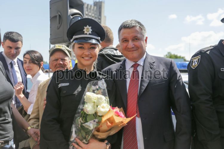 Министр внутренних дел Украины Арсен Аваков во время церемонии принятия присяги сотрудниками новой патрульной полиции, в Сумах, 12 мая 2016 г. Фото Бабич Юлия / УНИАН