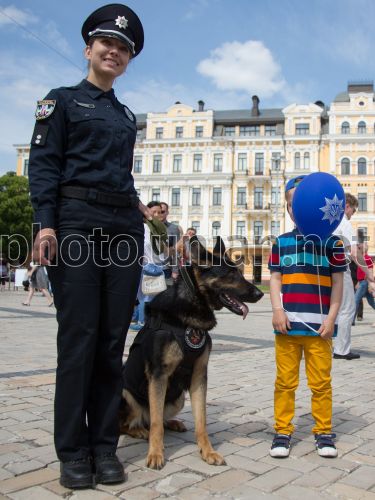 Сотрудница полиции во время благотворительной акции "За нами будущее", посвященной Дню защиты детей, на Софийской площади в Киеве, 4 июня 2016 г. Фото Соколовская Инна / УНИАН