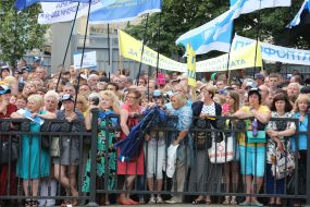 Участники Всеукраинского марша протеста "Европейским ценам - европейскую зарплату!" в Киеве, 6 июля 2016 г. В этот день в Киеве проходит Всеукраинский марш протеста "Европейским ценам - европейскую зарплату!". Участники марша выступают против повышения цен на газ и коммунальные тарифы. Фото Сироткина Анастасия / POOL / УНИАН