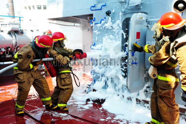 Показательные занятия по борьбе за живучесть корабля во время медиа-дня морского компонента украинского-американских учений "Си Бриз-2016" (Sea Breeze) в Одессе, 25 июля 2016 г. Украинско-американские учения "Си Бриз-2016" стартовали 18 июля. Темой учений является проведение многонациональной операции по безопасности в кризисном регионе. Фото Шепелев Александр / УНИАН