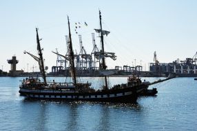 Учебная баркентина ВМС Италии "Палинуро" (Palinuro) в Одессе, 15 августа 2016 г. "Палинуро" — один из старейших кораблей в составе ВМС Италии. Он был спущен на воду в 1933 году. Фото Шепелев Александр / УНИАН