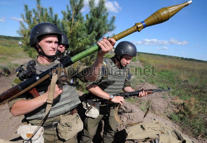 Курсанты ускоренного выпуска офицеров Национальной академии Национальной гвардии заряжают гранатомет РПГ-7 во время полевого выхода с учебными стрельбами, на полигоне в селе Башкировка Чугуевского р-на Харьковской области, 7 сентября 2016 г. Фото Мариенко Андрей / УНИАН