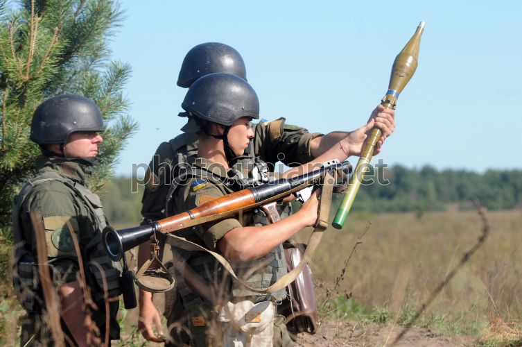 Курсанты ускоренного выпуска офицеров Национальной академии Национальной гвардии заряжают гранатомет РПГ-7 во время полевого выхода с учебными стрельбами, на полигоне в селе Башкировка Чугуевского р-на Харьковской области, 7 сентября 2016 г. Фото Мариенко Андрей / УНИАН