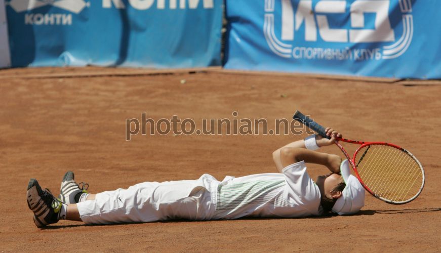 COMM Теннисист Николай Репкин играет в теннис во время Всеукраинского открытого детско-юношеского турнира «Янтарная ракетка 2007» в Донецке в воскресенье, 1 июля 2007 г. Турнир является детско-юношеским аналогом всемирно известной серии «Большого шлема», который проходит в разное время года на разный покрытиях, где выступают сильнейшие игроки. В турнире приняли участие 186 спортсменов из разных регионов Украины. Фото Валерия Белокрыла / УНИАН