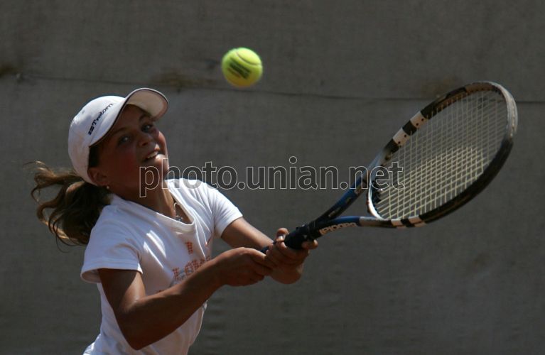 COMM Теннисистка Анастасия Шестакова играет в теннис во время Всеукраинского открытого детско-юношеского турнира «Янтарная ракетка 2007» в Донецке в воскресенье, 1 июля 2007 г. Турнир является детско-юношеским аналогом всемирно известной серии «Большого шлема», который проходит в разное время года на разный покрытиях, где выступают сильнейшие игроки. В турнире приняли участие 186 спортсменов из разных регионов Украины. Фото Валерия Белокрыла / УНИАН