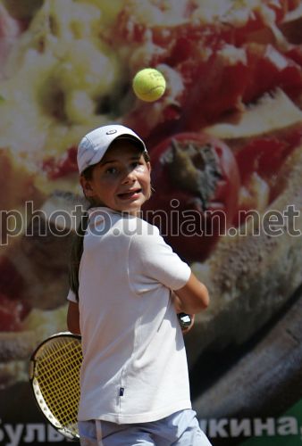 COMM Теннисистка Антонина Иванова играет в теннис во время Всеукраинского открытого детско-юношеского турнира «Янтарная ракетка 2007» в Донецке в воскресенье, 1 июля 2007 г. Турнир является детско-юношеским аналогом всемирно известной серии «Большого шлема», который проходит в разное время года на разный покрытиях, где выступают сильнейшие игроки. В турнире приняли участие 186 спортсменов из разных регионов Украины. Фото Валерия Белокрыла / УНИАН