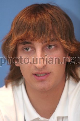 СОММ Игрок Национальной молодежной сборной Украини по хоккею Дмитрий Найда на пресс-конференции на тему: “Юные хоккеисты “Дружбы-78” вынуждены бежать от коррупции и произвола в США”, в Киеве, в субботу, 14 июля 2007 г. Члены родительского комитета приехали в Киев, чтобы обратиться к Президенту Украины за помощью в наведении порядка в школе и обеспечения нормальных условий для тренировок детей. Фото Александра Синицы / УНИАН
