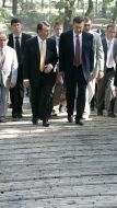 COMM Президент Украины Виктор Ющенко, слева, и премьер-министр Виктор Янукович в канун 16-й годовщины Независимости Украины, в День Государственного флага, во время церемонии возложения цветов к памятнику князю Владимиру в Киеве в четверг, 23 августа 2007 г.Фото Михаила Маркива / POOL / УНИАН