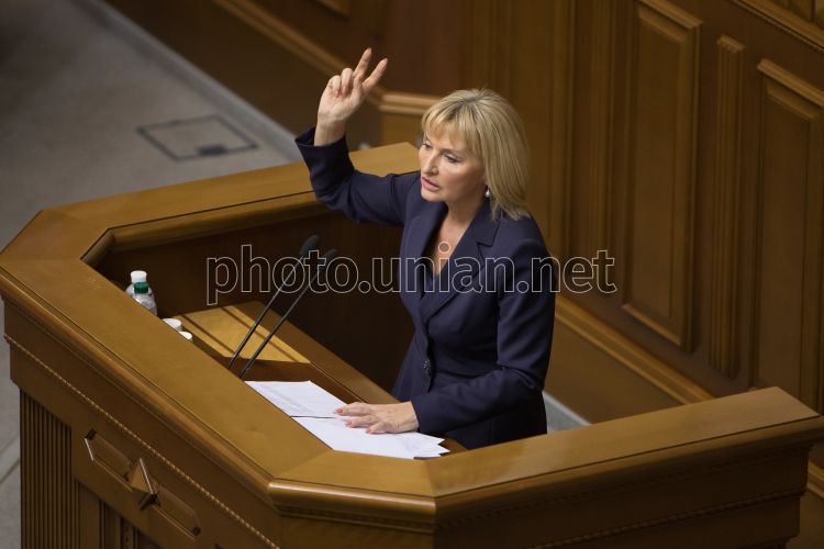 Народный депутат Ирина Луценко выступает с трибуны парламента во время заседания Верховной Рады Украины, в Киеве, 5 октября 2017 г. Фото Космач Александр / УНИАН