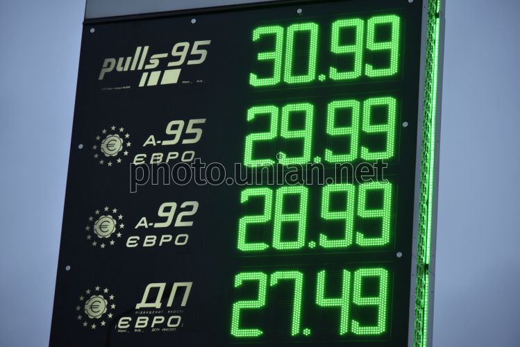 Табло с ценами на бензин возле автозаправочной станции, во Львове, 26 ноября 2017 г. Фото УНИАН